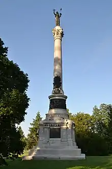 The New York State Monument is a large monument at the Gettysburg National Cemetery in Pennsylvania. The granite and marble monument was dedicated in 1893 honors the soldiers from New York who died at the Battle of Gettysburg during the American Civil War. It was commissioned by the New York Monuments Commission and designed by sculptor Caspar Buberl, with some additional bronze-works designed by Maurice J. Power.