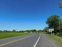 All of what is now NY 12F outside of the city of Watertown was initially improved to state highway standards in the mid-1910s as part of a project that also upgraded the 2 miles (3.2 km) of modern NY 180 between NY 12F and NY 12E to state standards. The two highways were added to the state highway system on February 8, 1916, following the completion of the $78,015.56 project (equivalent to $2.1 million in 2024). Both roads were collectively designated, but not signed, as State Highway 1182 (SH 1182).[6][7] When the first set of posted routes in New York were assigned in 1924, all of SH 1182 became part of NY 3.[8] At the time, NY 3 continued south toward Pulaski on current US 11 and north toward Clayton on modern NY 12E.[9]