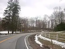 NY 134 passing along a curve in front of the Kitchawan Preserve