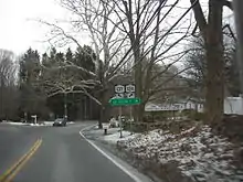 NY 137A was a spur route in the town of Pound Ridge that connected NY 137 to the Connecticut state line, where it connected to State Highway 184 (later Route 124), by way of Westchester Avenue. It was assigned as part of the 1930 renumbering of state highways in New York.[5] NY 137A was renumbered to NY 104 c.1932,[12][13] which in turn was renumbered to NY 394 c.1935 to eliminate numerical duplication with U.S. Route 104 in Upstate New York.[14][15] In 1967, NY 394 became an extension of NY 124.[16] The extension was short-lived as NY 124 was truncated back to the hamlet of Pound Ridge by 1970.[17] Westchester Avenue is now maintained by the town of Pound Ridge.[10]