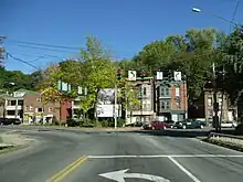 Ferry Street returns to surface level at 3rd Street, where NY 2 meets the southbound half of US 4, which is also routed along a one-way pair through the city. A junction with US 4 northbound follows two blocks to the east at 4th Street.[4] While most of NY 2 westbound is city-maintained in Troy, NY 2 eastbound is a state road up through its intersection with 5th Avenue.[5] After 5th Avenue, the highway leaves downtown Troy and begins to climb the hills overlooking the city. Near the Rensselaer Polytechnic Institute, Ferry and Congress streets merge to form a single two-lane road carrying the Congress Street name. The route runs southeastward from the merge, serving another commercial strip in the Eastside section of the city and connecting to the northern terminus of NY 66 (Pawling Avenue).[4]