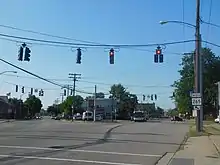The surviving portions of that route are those that still carry the name. NY 265, meanwhile, was assigned c. 1936 to the portion of its modern alignment south of Tonawanda.[2][3] That year, a stone was installed at the junction with NY 324 (Sheridan Drive) by the town of Tonawanda to honor the Military Road during the centennial of the city.[6] It was extended northward along NY 384 and Military Road to its current northern terminus near Lewiston in the early 1940s.[9][10]