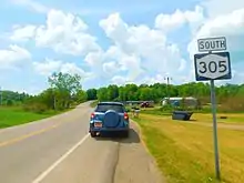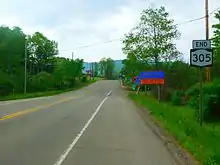 The segment of modern NY 305 north of Cuba was originally the southernmost portion of Route 16, an unsigned legislative route assigned by the New York State Legislature in 1908. At Belfast, Route 16 continued north on what is now NY 19.[6][7] The Cuba–Belfast section of legislative Route 16 was assigned a posted route designation as part of the 1930 renumbering of state highways in New York when it was designated as the northern half of NY 94, which continued south through Cuba to NY 17 (now NY 417) in Portville. At the same time, what is now NY 45 in Rockland County was designated as NY 305.[2][8] The NY 94 and NY 305 designations were swapped in the early 1940s, placing NY 305 on its current alignment from Portville to Belfast.[3][4] South of Portville, what is now NY 305 was originally designated as part of NY 16 c. 1931.[2][9] It was added to NY 305 in August 1962 when NY 16 was rerouted south of Olean to follow what had been NY 16A.[10]