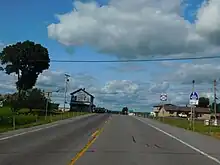 NY 410 begins at a rural intersection with NY 26 in the town of Denmark. The two-lane route heads eastward from the junction, winding to the north and south across open, rolling terrain with several cultivated fields. After 1 mile (1.6 km), the highway meets County Route 19 (CR 19, named East Road) and turns to the northeast toward the village of Castorland. The open fields gradually give way to homes as NY 410 enters the village limits as Main Street. The route passes through the center of the village, serving four lightly developed residential blocks before crossing the Mohawk, Adirondack and Northern Railroad at the northeastern edge of the community. At the rail crossing, the highway passes south of what was once the New York Central Railroad's Castorland passenger station.[3]