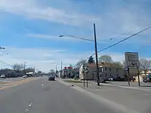 The route and the creek follow loosely parallel alignments to a point just outside the village limits of both New York Mills and the adjacent village of Yorkville, where NY 5A connects to NY 69 (Oriskany Boulevard) by way of a trumpet interchange. NY 69 ends here while NY 5A merges with the four-lane Oriskany Boulevard and heads east into Yorkville. Here, the route traverses several blocks of businesses and homes before crossing into the city of Utica, at Whitesboro Street (unsigned NY 921W). Within the city limits, NY 5A closely parallels the CSX Transportation-owned Mohawk Subdivision as it heads along the northern fringe of the city. It continues to serve a mix of residential and commercial areas on its way toward downtown Utica, crossing the New York, Susquehanna and Western Railroad to reach an interchange with the North–South Arterial (I-790, NY 5, NY 8, and NY 12). NY 5A becomes NY 5S at the midpoint of the interchange.[4]