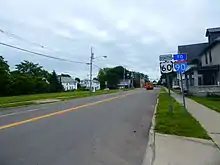 Now north of Jamestown, NY 60 begins to become a two-lane rural highway, passing to the northeast and serving an industrial park adjacent to Jamestown Airport in Ellicott. NY 60 soon turns to the northwest, bending northward into the hamlet of Kimball Stand. In Kimball Stand, NY 60 crosses over but does not intersect with CR 380 (North Work Street) once again. A short distance later, it intersects with CR 44 (Old Route 60), which serves as the eastern terminus for the county route. Until 1980, this intersection served as the southern terminus for NY 380, eliminated in 1980.[6] Continuing north out of Kimball Stand, NY 60 enters the town of Gerry. After crossing a creek, the route turns to the northeast, intersecting with CR 65 (Gerry-Levant Road), which NY 60 turns to the northwest on. The former right-of-way continues to the northeast as CR 50 (Gerry-Ellington Road). NY 60 heads northwestward as the main street through the hamlet of Gerry, soon abandoning the hamlet for the rural backdrop to the north. The route becomes a northward residential street, until intersecting with CR 77 (Jamestown Road) in the village of Sinclairville. The route bends to the northwest again, crossing over but not intersecting with CR 66 (Sinclair Drive). After leaving Sinclairville, NY 60 re-enters the town of Gerry, becoming a rural farm road before entering the town of Charlotte.[5]