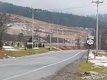 New York State Route 371 (NY 371) is a north–south state highway in Steuben County, New York, in the United States. It runs for 4.83 miles (7.77 km) from an intersection with NY 415 in the village of Cohocton to a junction with NY 21 in the town of Cohocton. NY 371 follows the Cohocton River and the main line of the B&H Rail Corporation for virtually its entire length. Most of the route passes through rural areas located inside of a valley surrounding the river.