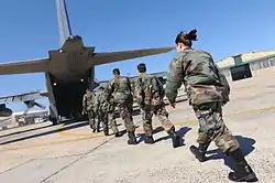 Cadets with the Leroy R. Grumman Cadet Squadron board an HC-130.