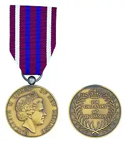 - ↑ "NZDF Medals - The New Zealand Gallantry Medal (NZGM)". medals.nzdf.mil.nz. Retrieved 22 June 2020.
