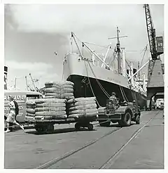 A shipment of wool being loaded in Wellington, in the mid-1960s