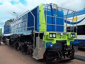 Newag 15D/16D is a cargo locomotive (type 15D - PKP ST48 series) or broad gauge (type 16D) diesel locomotive rebuilt by Newag in Nowy Sącz in Poland, which is a deeply modernised SM48 (Soviet TEM2) locomotive.[1]