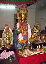 Newar Buddhism is the form of Vajrayana Buddhism practiced by the Newar people of the Kathmandu Valley, Nepal.[1][2] It has developed unique socio-religious elements, which include a non-monastic Buddhist society based on the Newar caste system and patrilineality. The ritual priestly (guruju) caste, vajracharya (who perform rituals for others) and shakya (who perform rituals mostly within their own families) form the non-celibate religious clergy caste while other Buddhist Newar castes like the Urāy act as patrons. Uray also patronise Tibetan Vajrayana, Theravadin, and even Japanese clerics.[3] It is the oldest known sect of the Vajrayana tradition outdating the Tibetan school of Vajrayana by more than 600 years.