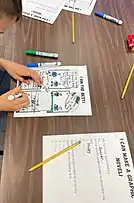 EL elementary newcomer student using graphic organizer to create a graphic novel. This is an example of Tompkin (2003) component seven.