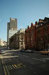 Newhall Street stretches from Colmore Row in the city centre by St Phillip's Cathedral in a north-westerly direction towards the Jewellery Quarter. Originally the road was the driveway to New Hall occupied by the Colmore family. New Hall was demolished in 1787 after being vacated by the Colmores and used as a warehouse by Matthew Boulton. Newhall Street was so named in 1766, after opening as a public street in 1746 called Newport Street and then New Hall Walk.[1] The streets on the estate were named after the children of the family.
