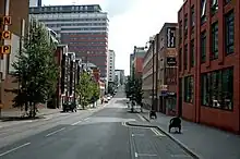 The view along Newhall Street towards Colmore Row and Bennetts Hill, seen in 2009. The tall building at the top of the street, National Westminster House has since been demolished.