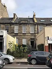 In 1805, the entire Newington estate was bought by the surgeon Benjamin Bell, who was assisted in his business dealings by his fellow surgeon Alexander Wood.[24] The same year, Bell built Newington House amid eight acres of land; the house was accessed from Blacket Avenue, which was named for Bell's familial estates in Middlebie, Dumfriesshire.[25] After Bell's death in 1806, Sir George Stewart of Grandtully bought the house and estate in 1808. Stewart constructed gates and lodges at either end of Blacket Avenue and Mayfield Terrace. The gates were closed at dusk every evening. The Kirkwood map of 1817 shows that, by this date, most present-day streets in this area had been laid out and named.[25] By the end of the 1830s, the northern part of Blacket Place had been developed with detached and semi-detached properties while villas had been constructed in Upper Gray Street near terraces in Middleby Street and Duncan Street.[26]