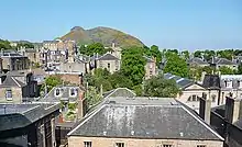 Arthur's Seat, visible over the roofs and treetops of Newington