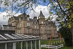 The 19th century saw the establishment in Newington of several health and educational institutions. Completed in 1877 on the site of the old settlement at the Powburn, the West Craigmillar Asylum for Blind Females superseded the blind asylum on Nicolson Street.[18] In 1875, Longmore Hospital on Salisbury Place opened as the Edinburgh Hospital for Incurables.[57] Founded by a bequest of John Alexander Longmore, the hospital occupied the former site of several houses and a boys' school known as Wilson's Academy.[33] Other schools of this period in Newington included Munro's Academy and Robertson's Academy, which occupied a Gothic building on the site of what is now South Oxford Street.[28] St Margaret's School was founded in Craigmillar Park in 1890 as Queen Margaret's College for Young Ladies.[58] Also in 1890, Madame Muriset's Craigmillar Park College was established on Crawfurd Road as a girls' boarding school. It closed at Muriset's retirement in 1932, by which time it was also accepting boys.[59] By 1896, the need for a new public school in Newington and the Southside was recognised by the foundation of Preston Street School on the corner of East Preston Street and Dalkeith Road. It opened in 1897 and remains in use as a primary school.[60] St Columba's Roman Catholic Church had opened an attached school the previous year on Strathearn Road in Marchmont. In 1897, this moved to Newington Road, moving again to the former Causewayside School building in 1924. It closed in 1941.[61]