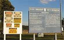 The Newington Armament Depot and Nature Reserve is part of the former Royal Australian Navy Armament Depot, Newington, which operated at the site until December 1999. Armaments used by Australian, British and United States Navy ships were received, inspected, tested, stored and distributed at the Depot. These armaments included gunpowder, explosive shells, cordite, fuses, depth charges, torpedoes and rockets.[1]