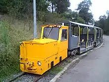The site has a 2 ft (610 mm) narrow gauge electric railway with 60v battery locomotives which were used for transporting munitions and now visitors around the armory.[23][24] The train is currently not in operation (as of 2020) but is expected to return.[25] The circuit runs through some restricted areas and partly goes outside the boundary of the Newington Armory into a publicly accessible area where the tracks cross over the Louise Sauvage Pathway twice.