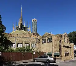 The original set of campus buildings were built during 1916 to 1918 and were designed by American architects Walter Burley Griffin and Marion Mahony Griffin. The Burley Griffins also designed furniture for the college, including distinctive chairs, tables and bookshelves for the dining room and the original bedrooms of the college. Much of this furniture remains in day to day use at the college, but some of it has found its way into various art galleries and private collections.[16] This was recognised by its inclusion on the Australian National Heritage List on 21 September 2005, citing "one of the best examples of Griffin’s architecture in Australia" and "Newman College is significant as an outstanding expression of Griffin’s architectural style".[17] The stonework has had substantial renovation to repair over 80 years of damage through exposure and natural degradation of the original stone and received the Australian Institute of Architects (Victorian Chapter) Heritage Architecture Award 2010.[15]