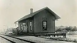 Newport once contained its own railroad station.[19] The station was used by Lake Shore and Michigan Southern Railway, Michigan Central Railroad, and Detroit and Toledo Shore Line Railroad.[20] While Newport no longer contains an active station, there are two railroad lines that run through the community: a single line operated by Norfolk Southern Railway and a dual line operated by Canadian National Railway.[21] The original station was moved and restored, and it is currently used as educational building for the nearby Newport Community Church.