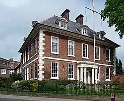 In 1917 Newport House was acquired by the municipal borough of Shrewsbury, which had previously used part of the Shire Hall in the Market Square as its meeting place.[7] The building continued to be the local seat of government after the enlarged Shrewsbury and Atcham Borough Council was formed in 1974[8] until the council decided to move to modern facilities at Frankwell Quay in Frankwell in 2004.[9] The opportunity was taken at the time to carry out an archaeological survey which identified a sherd dating back to the late Saxon era.[10] Newport House was subsequently converted back for residential use as a family home.[11]