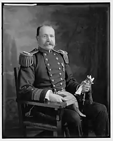 Mason left Cincinnati in April 1904 and on 1 August 1904 began a lengthy tour as Chief of the Bureau of Ordnance[11] which lasted until 31 May 1911,[12] During the tour je was promoted to captain on 30 September 1904[13] and to rear admiral on 12 November 1908. On 27 February 1908, he testified before the United States Senate about alleged structural defects in U.S. Navy battleships.[14] He became a member of the General Board of the United States Navy on 25 May 1911, and remained on the board until his retirement.[15][16]