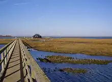 Newtown is located 5 miles (8 km) west of the town of Newport on the large natural harbour on the island's north-western coast.[1] It is now mostly a national nature reserve owned and managed by the National Trust.