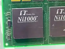 The Ni1000 is an artificial neural network chip developed by Nestor Corporation and Intel. It is Intel's second-generation neural network chip but first all digital. The chip is aimed at image analysis applications, contains more than 3 million transistors and can analyze patterns at the rate of 40,000 per second.[1] Prototypes running with Nestor's OCR software in 1994 were capable of recognizing around 100 handwritten characters per second. The development was funded with money from DARPA and Office of Naval Research.[2]