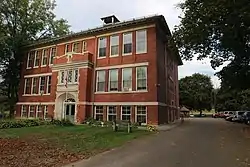 Nichols High School is a historic high school located at Nichols in Tioga County, New York. It is a Tudor Revival style, three-story, rectangular brick structure with limestone trim built in 1911–1912. The hipped roof is topped with a belfry that retains the original school bell. The building was last used as a school in 1958.[2]