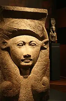 The ancient Egyptian collection included artefacts from a variety of ancient sites including Abydos, Alexandria, Bubastis, Fayum, Heliopolis, Memphis, Saqqara, and Thebes.[6] Egyptian material formed a large part of Sir Charles Nicholson's founding donation. He traveled throughout Egypt between 1856 and 1857 purchasing artefacts from dealers in Cairo and Luxor as well as collecting artefacts straight from sites, including Karnak where he collected a fragment of a red granite thought to be from Hatshepsut's obelisk.[7]