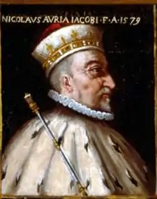 Son of Giacomo Doria and Bettina De Mari, and member of the wealthy Doria family, he was born in Genoa presumably around 1525. On 20 October 1579 he was therefore elected Doge of the Republic, the twenty-seventh position since the biennial reform and the seventy-second in republican history. The new doge Nicolò Doria was therefore called to revive a Genoa, and its republic, devastated by a civil war between the noble factions, but which also had repercussions on the Genoese population and on the international scene. After the end of his Dogate, Doria was then appointed perpetual procurator and representative of the Magistrate of Corsica. He died in Genoa on 13 October 1592.[1][2]
