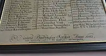 In the Brouwerskapel of the "Grote Kerk", also named St. Bavochurch, in Haarlem, hangs a plaque with inscriptions of names of ministers who served the church since the Reformation. The plaque was made and signed by Nicolaus Boddingius, "Anno 1652". The bottom of the plate contains two phrases, one in Greek and the other in Hebrew. The Greek text resembles Philippians 3:7, "but whatever was to my profit, I now consider loss for the sake of Christ", while the Hebrew text comes from Psalm 121:2, "My help comes from the Lord". The apparent essence of both phrases is to identify that the listing of names of ministers is not for the glory of them, but for their service to God.