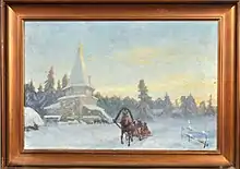 The artist executed a series of paintings based on these drawings and sketches and in 1904 he arranged their exhibition in St. Petersburg, in 1905 – at the World Exhibition in Liège, in 1906 – in Moscow, and in 1910 – in London. At the World Exhibition in Liège, the artist was assigned a separate room in the art section. The watercolor "Chinese Watchtower" was bought by the Belgian Museum in Antwerp.[1]