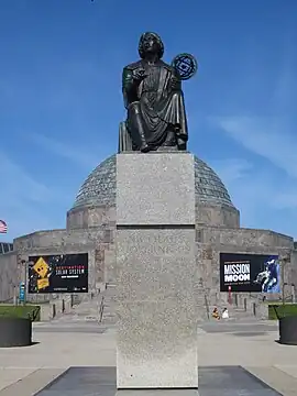 The Nicolaus Copernicus Monument is an outdoor sculpture commemorating and depicting Nicolaus Copernicus, installed along Solidarity Drive outside Chicago's Adler Planetarium, in the U.S. state of Illinois. Bronislaw Koniuszy's replica of Bertel Thorvaldsen's original 1830 sculpture in Warsaw, Poland, was created, installed, and dedicated in 1973. Adler Planetarium erected the monument to mark the 500th anniversary of Copernicus' birth.[1]