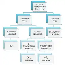 - ↑ Gotti, C.; Fornasari, D.; Clementi, F. (1997), "Human Neuronal Nicotinc Receptors", Progress in Neurobiology, 53 (2): 199–237, doi:10.1016/S0301-0082(97)00034-8, PMID 9364611, S2CID 10421687