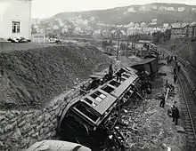The large and heavy engines were damaged, but mostly in one piece, engine 182 which had hauled train no. 361 was the most severely damaged of these which sustained a destroyed cylinder. Behind no. 182, the conductor's carriage had been seriously damaged and the train manager was wounded. The great losses took place in the extra train Litra D. The luggage car running behind the two engines was tossed aside, but the second and third cars, sleeping carriages, had been crushed as they bored into one another and tipped over. Crushing of these two cars had dissipated most of the energy, and behind this the wreckage of these two cars, the train was mostly unharmed.
