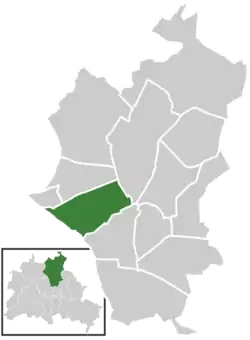 The residential area that arose after nearby Berlin had become the German capital is characterised by mansions and dwelling houses, developed primarily around the year 1910 on the former estates of Schönhausen Palace.[3] This short-lived municipality of the former Niederbarnim district merged into Berlin with the "Greater Berlin Act" in 1920.