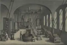 Sørensenbrewery closed in the late 1840s. He also moved but without selling the property. At the time of the 1850 census, Sørensen's property in Niels Hemmingsens Gade was home to 37 residents in nine households. Lars Rasmussen was now residing on the ground floor of the rear wing. His household consisted of people.[22] Edvard Ursin, a master bookbinder, resided on the ground floor with his wife Nathalie Sophie Schytte, their two children (aged one and three), his sister-in-law Julie Sophie Schytte and one maid.[23] Christian Georg Wille, a sculptor, resided on the first floor with his wife Emilie Charlotte Fischer, his sister-in-law Juliane Christine Fischer and a nine-years-old girl.[24] Gabriel Jan Joseph Herbert le Monnin, a portraot painter, resided on the second floor with his wife Ane Kirstine Appelt.[25] Lars Rasmussen was still residing in the basement with his wife, daughter and one lodger.[26] Johanne Margrethe Schmidt, a widow resided on the first floor of the rear wing.[27] Dorothea Sophie Frederikke Sibbern, an "institute manager" (institutbestyrerinde), was also residing on the first floor of the rear wing.[28] Else Olsen, another widow, resided on the second floor of the rear wing with her daughter Emma Marie Olsen and one maid.[29] Ane Christine Petersen, a third widow, was also residing on the second floor of the rear wing with her daughter.[30]