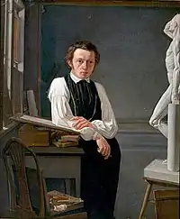At the age of fifteen, he entered the Royal Danish Academy of Fine Arts and, in 1824, became a student at the Academy's Model School (Modelskolen). His primary instructors were Christian August Lorentzen and Christoffer Wilhelm Eckersberg. Later in 1824, however, he broke off his studies to become private secretary to British Ambassador, Sir Augustus Foster, with whom the family had become acquainted during their captivity.[1][2]