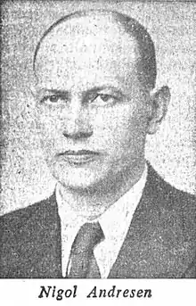 Nigol Andresen (pen name, Ormi Arp; 2 October 1899 Haljala Parish, Wierland County โ 24 February 1985 Tartu) was an Estonian and Soviet politician, writer, literary critic, and translator. He was a member of V Riigikogu.[1]