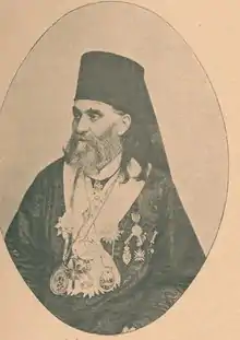 Nikanor Ružičić (Secular name: Nikola Ružičić ; Serbian Cyrillic: Никанор Ружичић; also known in Imperial Russia as Nikolai Grigorievich Ružičič;[1] 15 April 1843 — 16 October 1916) was a Serbian church historian,[2] and the bishop of Žiča from 1886 to 1889 and Niš from 1898 until 1911. He was one of the 19th-century intellectuals who corresponded with Franjo Rački and others raising many questions of the time but nothing of consequence was ever realized.[3][4] He is the author of a seminal work entitled Istorija srpske crkve (History of the Serbian Church) in two volumes, published in Zagreb in 1894[5]