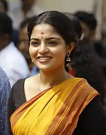 Nikhila Vimal is an Indian actress who predominantly works in Malayalam and Tamil films in addition to Telugu films.[1] After appearing in a minor role in Bhagyadevatha (2009), her lead role in the big screen came in Love 24x7 (2015). She went on to appear in successful films like Vetrivel (2016), Kidaari (2016), Aravindante Athidhikal (2018), Njan Prakashan (2018), Mera Naam Shaji (2019), Oru Yamandan Premakadha (2019), Thambi (2019), Anjaam Pathiraa (2020), The Priest (2021), Madhuram (2021), Jo and Jo (2022), Kotthu (2022), Ayalvaashi (2023), Por Thozhil (2023) and Journey of Love 18+ (2023).[2]