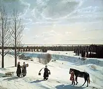 In 1827, Krylov was awarded a small gold medal of the Society for the Encouragement of the Arts for his work Winter and for his portraits, which were exhibited at the Academy of Arts.[1]