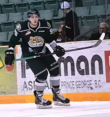 He joined the Blades in 2013 where he led all rookies in goals (28), assists (50), and points (78) during the 2013–14 WHL season.[2] His outstanding play was rewarded when he was invited to play the 2014 CHL Top Prospects Game.[3]