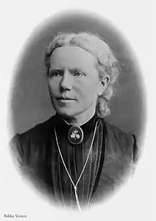 Vonen's first folklore tales were printed anonymously in 1865–66, and she had 24 tales printed in Dølen in 1868–69, under the headers "Æventyr fraa Sunnfjord" and "Segner fraa Sunnfjord, fortalde av gamle Synnve".[1] She wrote using Danish language herself, but supported the Nynorsk movement, and was the first female member of the Nynorsk language society Vestmannalaget.[2] She attended several "girls' schools" over the years, and graduated as teacher from Nissen's Girls' School in the late 1860s. She co-founded a school for girls in Dale in 1869, Nikka Vonens Pigeinstitutt, and chaired the school from 1871 to 1907. Vonen made hiking trips in Jotunheimen along with mountain pioneers such as Emanuel Mohn, Ernst Sars and William Cecil Slingsby, and she was among the first women to ascend Galdhøpiggen.[1][3] She contributed to the women's magazine Urd, and supported the movement for women's rights.[2]