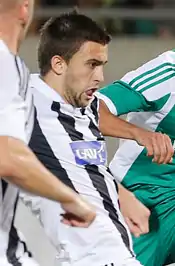 On 6 July 2011, Aksentijević signed his first professional contract with Partizan, on a five-year deal.[5] He scored a long-range goal on his league debut against Sloboda Užice on 21 August 2011. However, Partizan lost the match 2–1.[6]