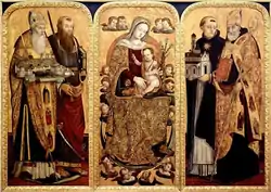 Of seventeen works by Nikola Božidarević recorded in the Dubrovnik Archives, only four paintings remain:[2] a triptych on a side altar in the Bumdevič Chapel of the Dominican monastery in Dubrovnik, The Annunciation in the art gallery of the Dominican church, the Durdevič family's altarpiece in the capitulary hall of the Dominican monastery, and another triptych in the Franciscan church on Lopud has also been ascribed to him.[3]