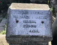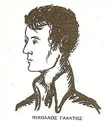 Nikolaos Galatis (Greek: Νικόλαος Γαλάτης; 1792–1819) was a Greek pre-revolutionary figure from Ithaca and one of the founding members of the Filiki Etairia, the secret revolutionary society.[1][2] He was initiated into the society by Nikolaos Skoufas in Odessa,[3] and in turn he initiated many others into the revolutionary society, some of whom became important figures in the events of 1821.[4][3] Despite his efforts in promoting the society in its early years, he was accused of various misdemeanours and follies, and was eventually assassinated by other members of the society just a few years after joining.[5][6][7][8][9][2]